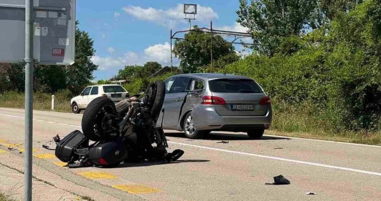 Prema dostupnim informacijama, motociklom je upravljao B. V., dok je vozilom Peugeot upravljao I. K. (38).