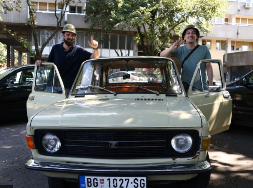 Martijn je probao i šljem iz tog perioda, a oprobao se i u vožnji stare Zastave 101, popularnog "stojadina".
