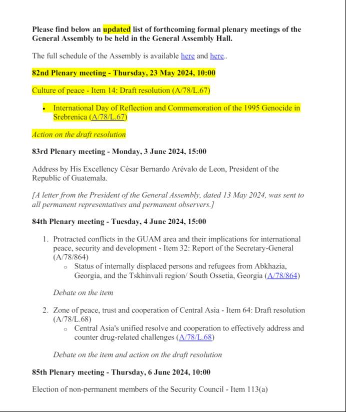 Naime, kako se vidi na ažuriranoj listi narednih sjednica koje će Generalna skupština održati, određeno je i vrijeme kada će se održati sjednica.