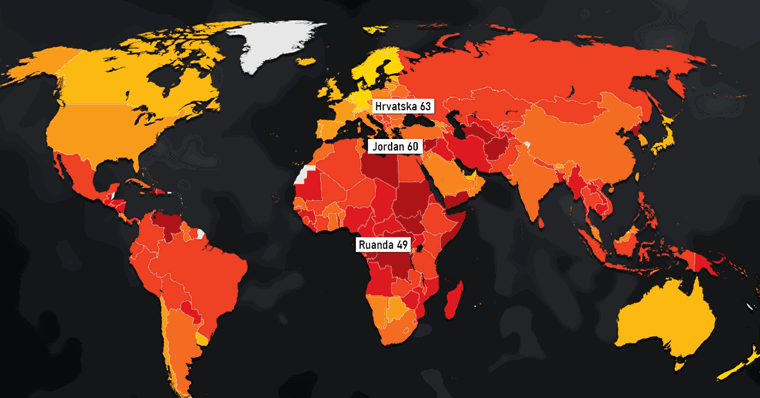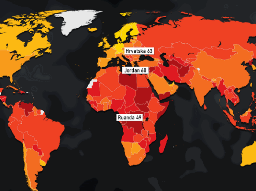Srbija je na 94. mjestu svjetske ljestvice s 38 bodova, a na čak 111. mjestu je BiH s indeksom 35.
