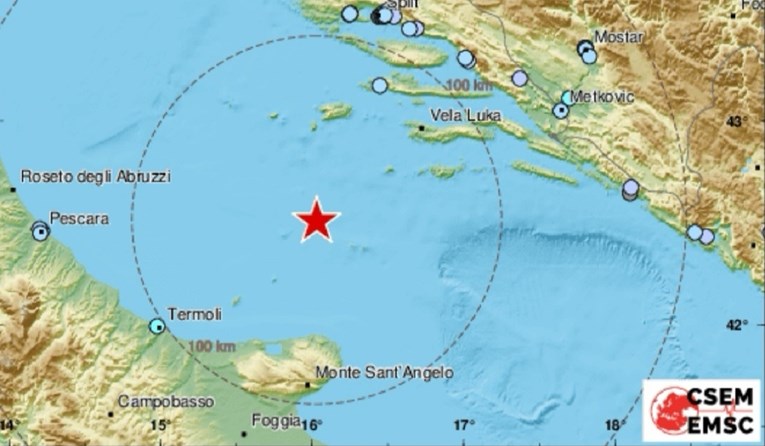 Snažan potres zatresao je Jadransko more, a osjetio se i u Hrvatskoj i u Italiji. Prema prvoj procjeni EMSC-a, potres je bio snage 5.9 po Richteru, a procjenu je naknadno smanjena na 5.4 po Richteru. Epicentar je bio oko 120 kilometara južno od Splita i 170 kilometara sjeverozapadno od Barija.