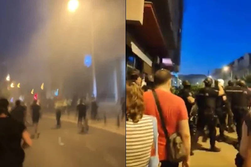 U Novom Beogradu je napeta situacija jer su demonstranti zaustavljeni policijskim kordonom, iza kojeg se nalaze pristalice vladajućih. Vučić se u međuvremenu u ulici Kneza Miloša obraća svojim pristalicama.
