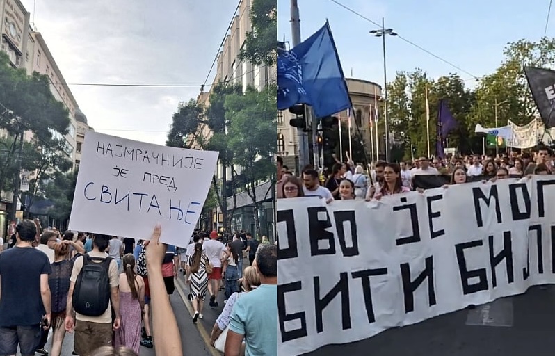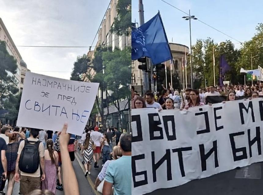 Jedna od studentica obratila se prisutnima ispred transparenta na kojem je stajalo samo jedno, ali snažno pitanje: "Dokle?" Podsjetila je kako su prije svega dva dana s balkona fakulteta tražili kraj nasilju. "Od prvog dana naše borbe, režimski mediji su nas prikazivali kao mete – i nas koji blokiramo nastavu i profesore koji nas podržavaju. Pitamo: dokle će ovo trajati?", rekla je.