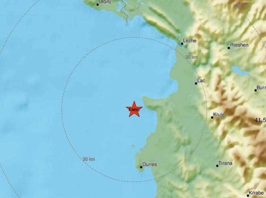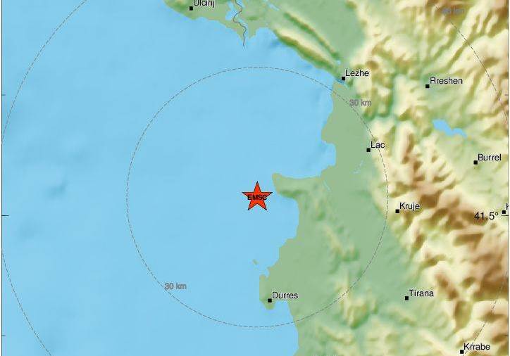 Prema preliminarnim rezultatima, zemljotres jačine 5,3 stepena po Richteru, epicentar je bio 24 kilometra sjeverno od Drača, na dubini od 10 kilometara.