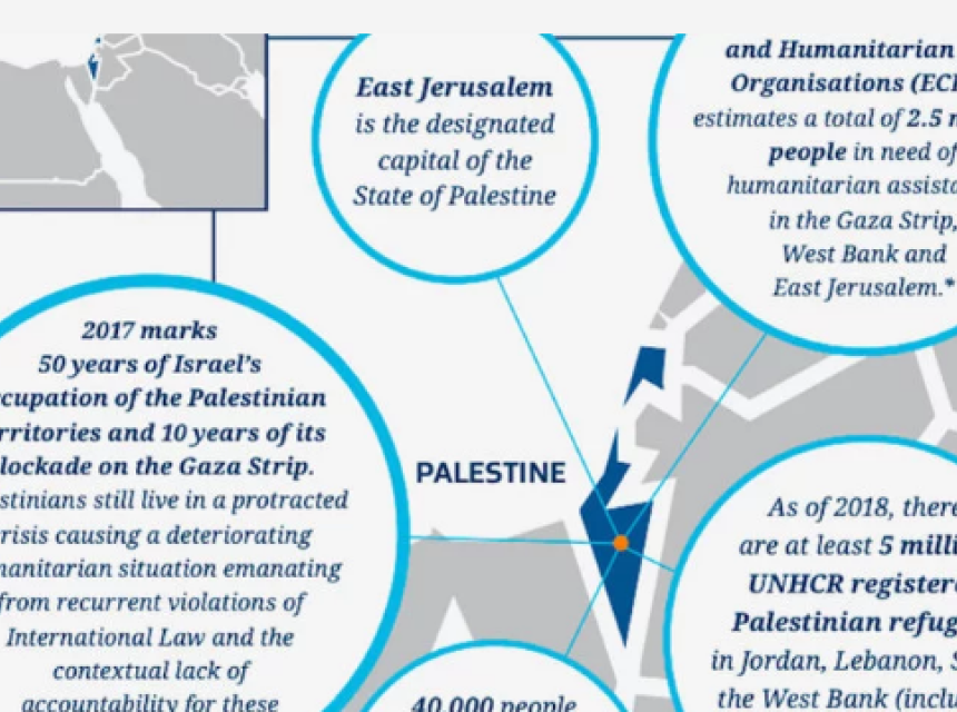 Na mapi se Istočni Jerusalem navodi kao ‘određeni glavni grad’ Palestine, a u dokumentu se navodi ogromna represija Palestinaca koju vrši Izrael. Također, ukazano je na ekonomske sankcije i blokadu Gaze.