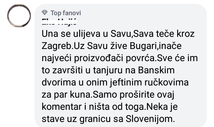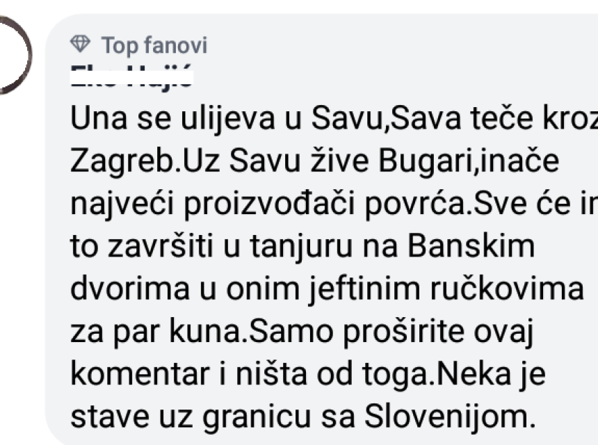 „Una se ulijeva u Savu,Sava teče kroz Zagreb.Uz Savu žive Bugari,inače najveći proizvođači povrća.Sve će im to završiti u tanjuru na Banskim dvorima u onim jeftinim ručkovima za par kuna.Samo proširite ovaj komentar i ništa od toga.Neka je stave uz granicu sa Slovenijom.“