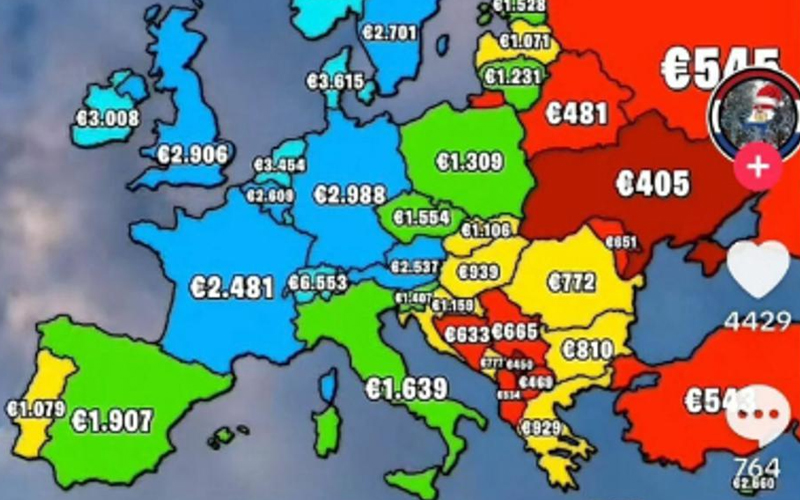 Stranica Numbeo koja se bavi statističkim i ekonomskim podacima je uporedila podatke o prosječnim plaćama u različitim državama Evrope.
