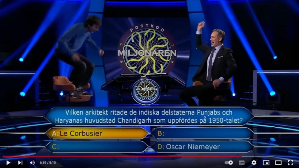 – Koji je arhitekt projektirao Chandigarh, glavni grad indijskih država Punjab i Haryana, koji je izgrađen 1950-ih godina? – glasilo je pitanje za milijun kruna.