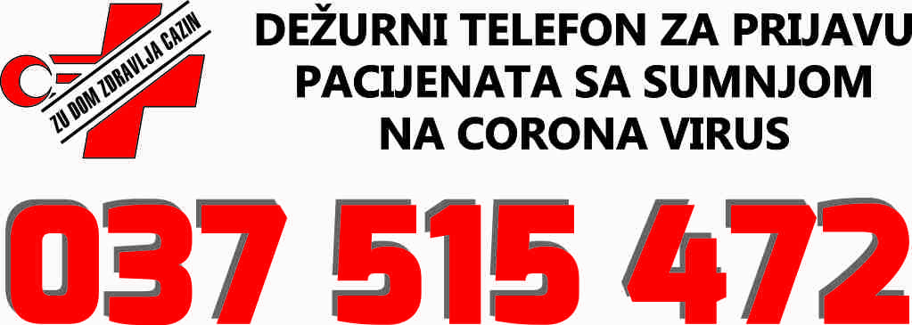Poštovani građani Grada Cazina i korisnici usluga Doma zdravlja Cazin obavještavamo Vas da zbog trenutne epidemiološke situacije povećanog broja pozitivnih na COVID-19 na području Grada Cazina: