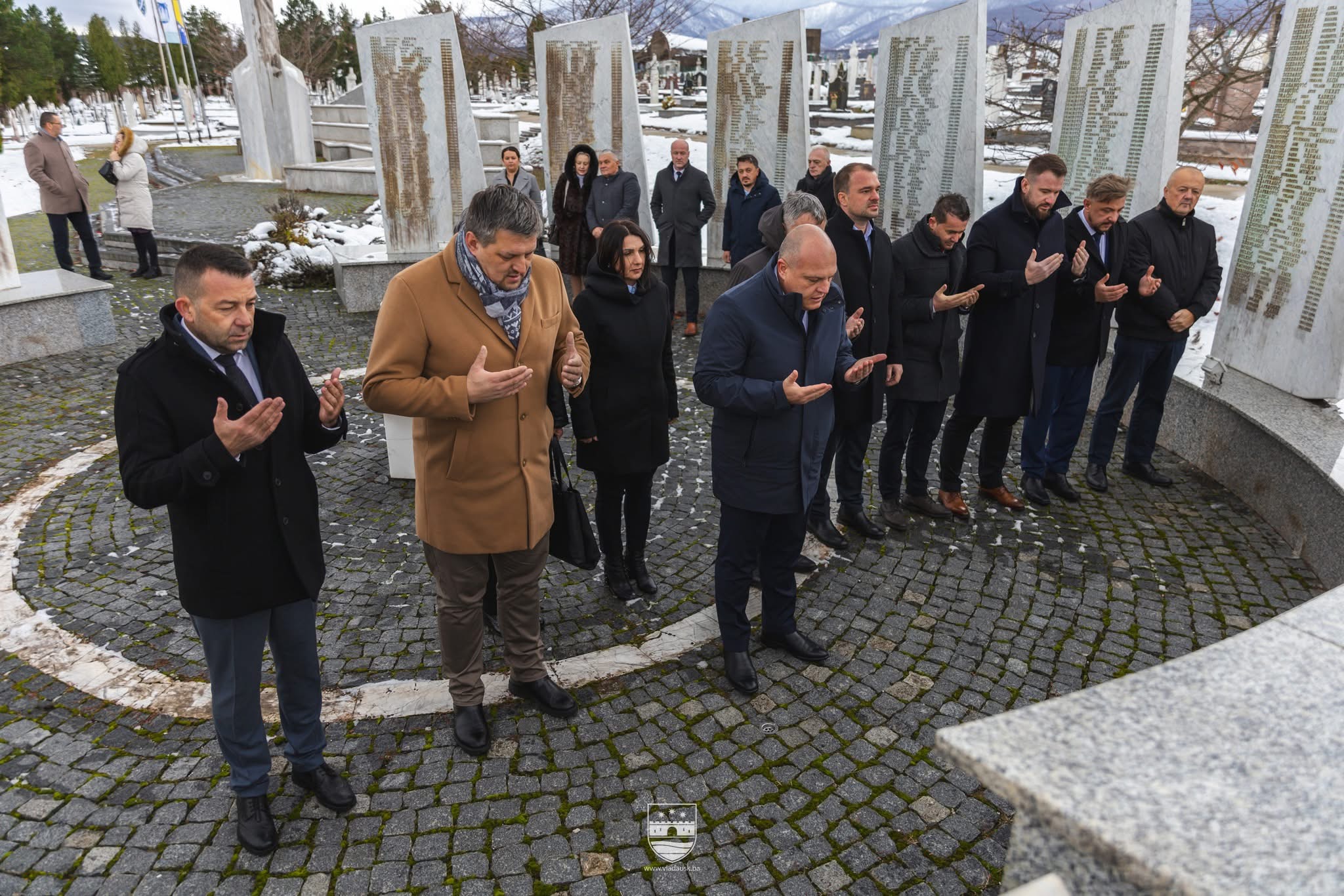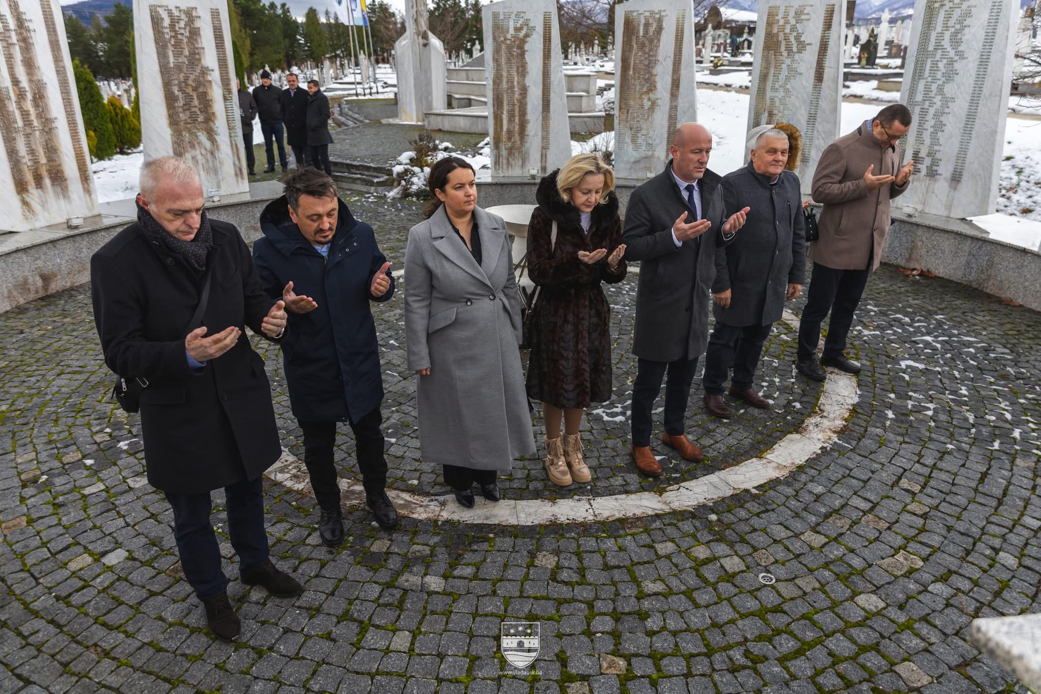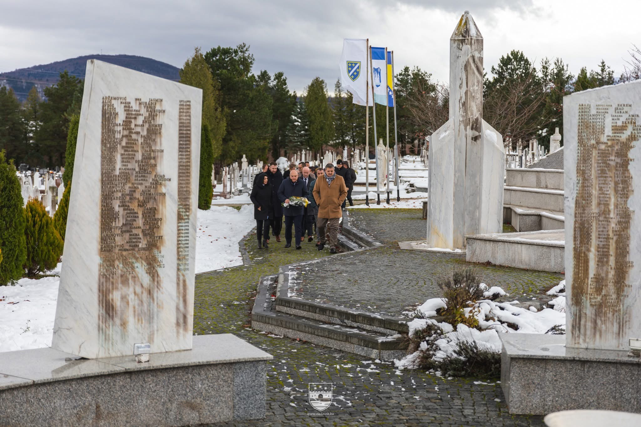 Na centralnim spomen-obilježjima posvećenim šehidima i poginulim borcima Armije Republike Bosne i Hercegovine, delegacija je položila cvijeće i odala počast svim herojima koji su dali živote za odbranu domovine.