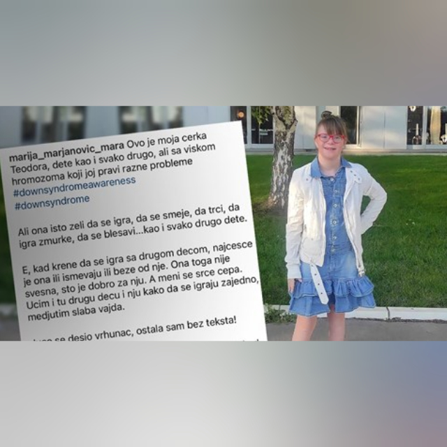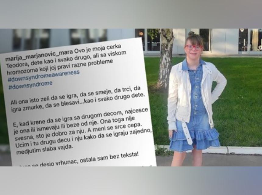 "Ovo je moja kći Teodora, dijete kao i svako drugo, ali s viškom kromosoma koji joj pravi razne probleme", započela je svoju objavu Marija Marjanović iz Srbije. Objavu prenosimo uz njenu dozvolu.