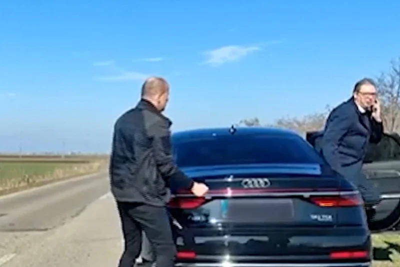 Inače, jučer je prvo objavljen isti snimak, ali bez dijela na kojem se vidi da je Vučić bio u automobilu. Tada se tvrdilo da je otpao točak s predsjednikovog automobila i da je "zamalo izbjegnuta tragedija".