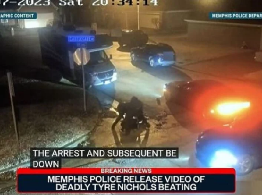 Zatim se vidi kako Nichols ima lisice na rukama, a policajci ga bez povoda brutalno udaraju, rukama i nogama, udaraju ga i nogom u lice. Nakon što ga stave u sjedeći položaj, udaraju ga u leđa.