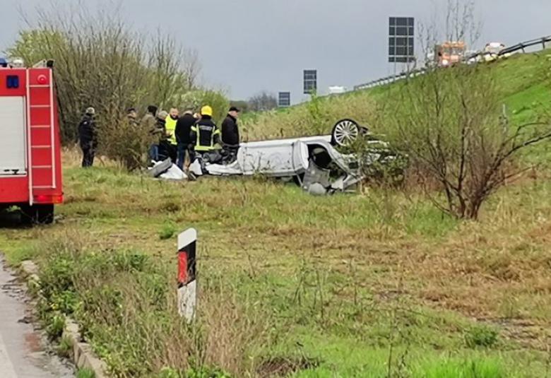 Automobil marke „škoda superb“ sletio je s puta, probio zaštitnu ogradu i prevrnuo se na krov.