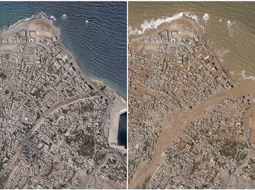Tariq al-Kharraz, predstavnik vlade, izjavio je da je voda odnijela cijela naselja, a more je odnijelo mnoga tijela. On je dodao da očekuje da će broj žrtava porasti iznad 10.000, što isto potvrđuju Međunarodna federacija društava Crvenog križa i Crvenog polumjeseca.