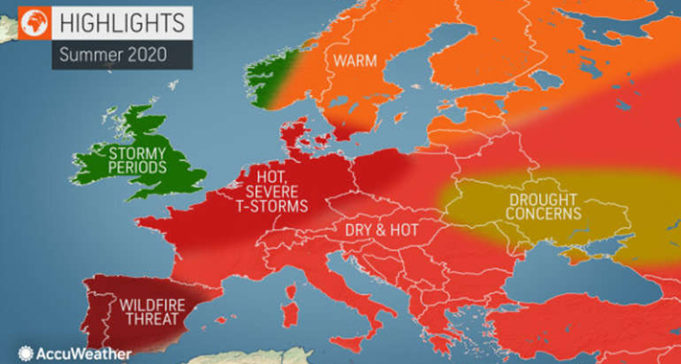 Meteorološki servis AccuWeather objavio je prognozu za predstojeće ljeto, prema kojoj će u Evropi biti veoma toplo, pa nekim dijelovima starog kontinenta prijete velike suše, jake oluje i šumski požari.