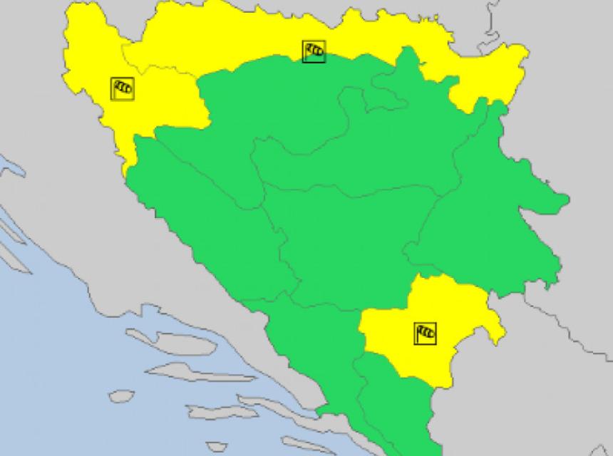 Za pet područja u Bosni i Hercegovini danas je na snazi žuti meteoalarm.