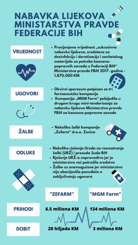 Farmaceutska kompanija „MGM Farm“ pobijedila u drugom krugu mini-tenderisanja za nabavku lijekova Ministarstva pravde FBiH za kazneno-popravne zavode. Na to se žalili iz kompanije „Zefarm“. Nakon nekoliko rješenja URŽ-a i presuda Suda BiH ispostavilo se da jeRješenje Ureda za razmatranje žalbi neprovodivo jer je ministarstvo već potrošilo sredstva.