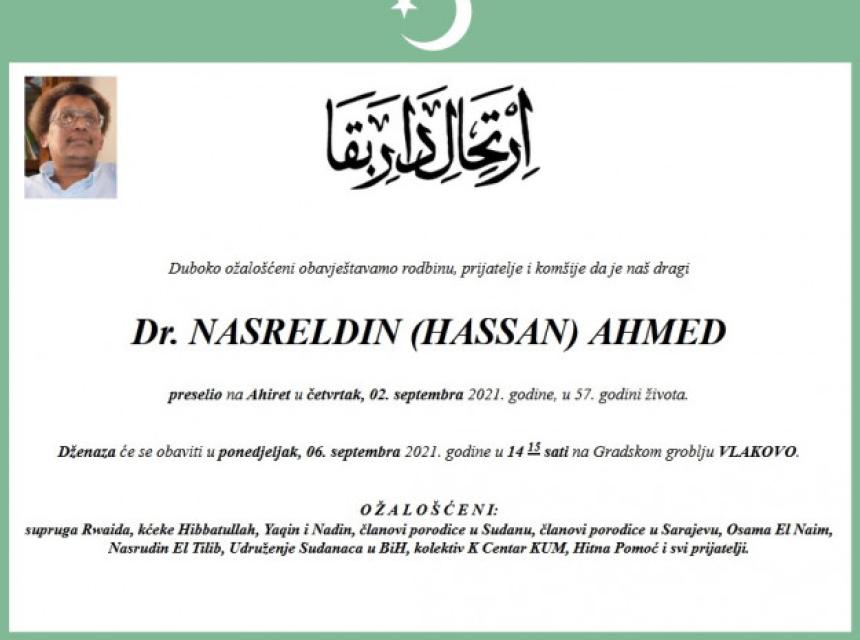 Doktor Nasreldin Ahmed, ugledni hirurg sa Kliničkog centra Univerziteta u Sarajevu (KCUS), preminuo je od posljedica koronavirusa.