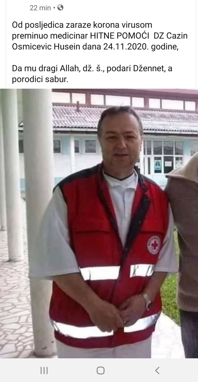 Medicinar Hitne pomoći Doma zdravlja Cazin preminuo danas od posljedica koronavirusa.
