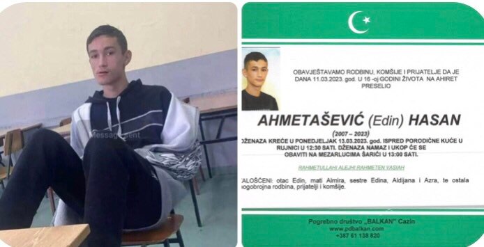 Hasan Ahmetašević iz Cazina, šesnaestogodišnjak je smrtno stradao.