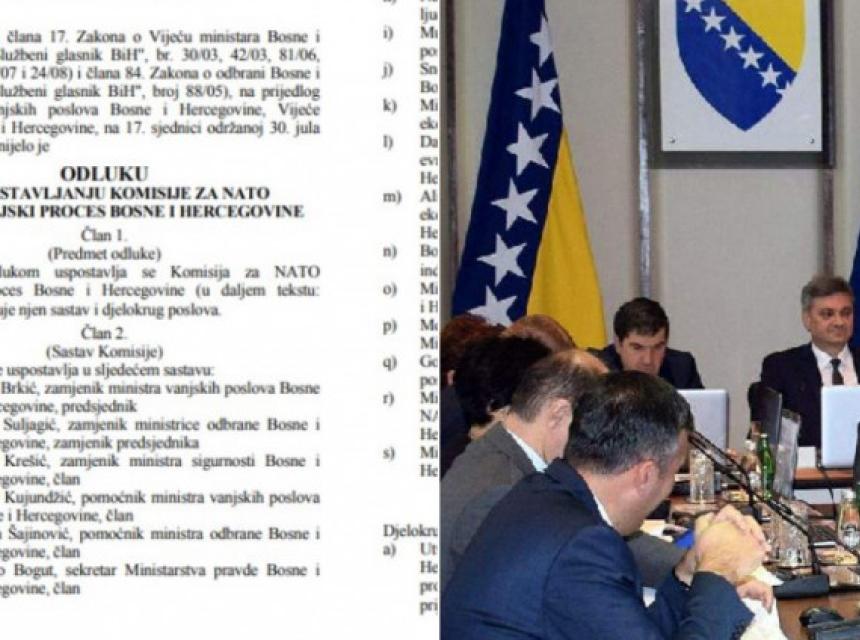 Premda je odluka o formiranju Komisije za NATO integracije stupila danom donošenja, i dalje se postavlja pitanje zbog čega je „osvanula“ u ''Službenom listu'' tek nakon više od tri godine, prenosi Avaz.