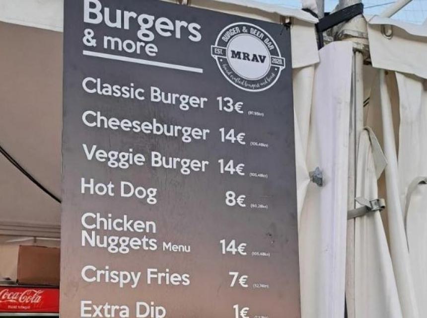 Moguće je pojesti i pizzetu za 9 do 10€ (oko 20 KM), a najjeftiniji su prženi krompirići koji dođu 7€ (oko 14 KM).
