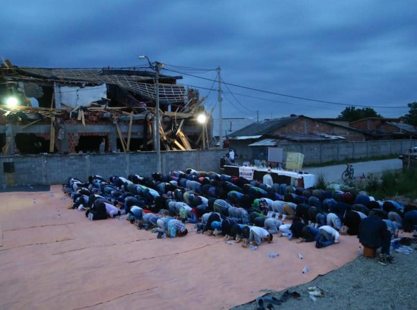 Islamska zajednica Srbije i humanitarna organizacija Merhamet iz Bosne i Hercegovine organizovale su večeras iftar na ulici kod porušenog objekta IZ u Zemun Polju.