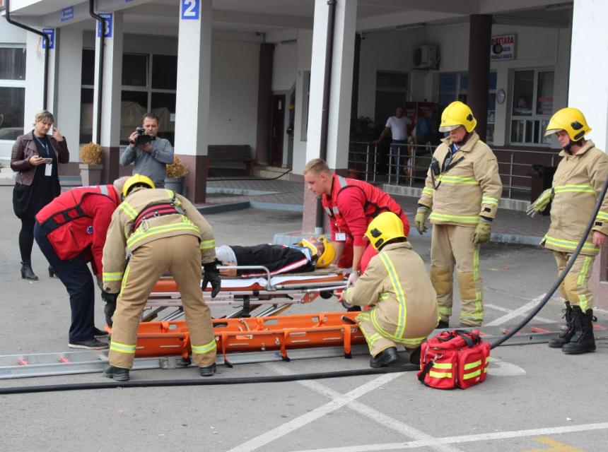 U sklopu vježbe iscenirani požar je zahvatio krovnu konstrukciju. Za to vrijeme uposlenici su bili na radnim mjestima. Poziv za djelovanje vatrogasaca uputio je građevinski radnik. Uslijedila je evakuacija uposlenika, a potom i djelovanje vatrogasaca sa navalnim, a potom komandnim, kombinovanim i pratećim vozilom. U akciju su se naravno uključile zdravstvene službe i policajci. Nakon toga je upriličena vježba sanacije nesreće sa hemijskim tvarima.
