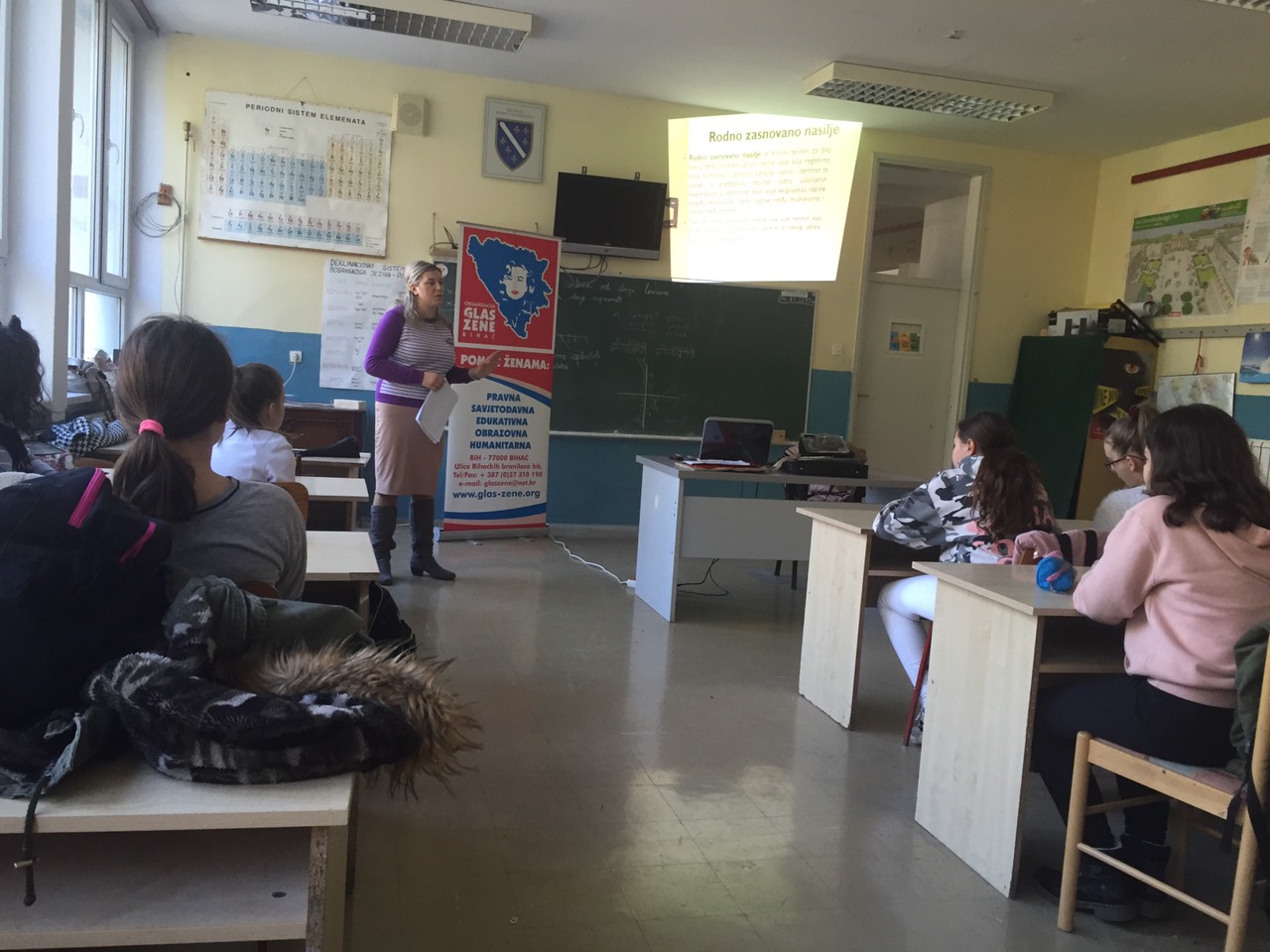 U okviru radionica učenici osmih i sedmog razreda, njih 47 upoznali su se pojmovima spol, rod, rodno zasnovnao nasilje , nasilje u školi i nasilje među vršnjacima. Učenici su pokazali veliko interesovanje za temu – rodno zasnovanog nasilja i aktivno učestvovali u diskusiji i prezentiranju primjera iz svakodnevnog života . Pored diskusije sa učenicima su uređene vježbe i test (ne) nasilnosti koji je pokazao da većina učenika nasilje rješava uzvraćenjem nasilja zbog čega su većina njih bili nekad nasilni. Pored toga tokom radionica učenici su anketirani sa ciljem utvrđivanja nivoa znanja o nasilju i rodno zasnovanom nasilju.