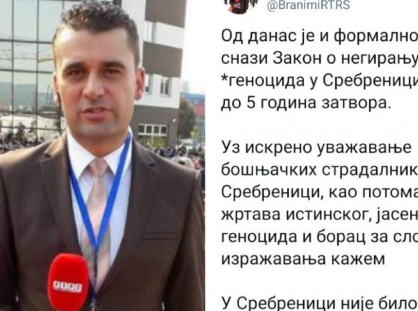 Novinar RTRS-a Branimir Đuričić oglasio se nakon što je danas predsjednik Skupštine Općine Srebrenica Ćamil Duraković Tužilaštvu BiH podnio krivičnu prijavu protiv njega, zbog negiranja genocida u Srebrenici.