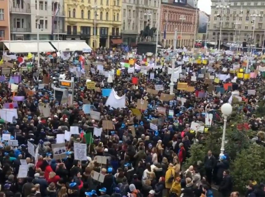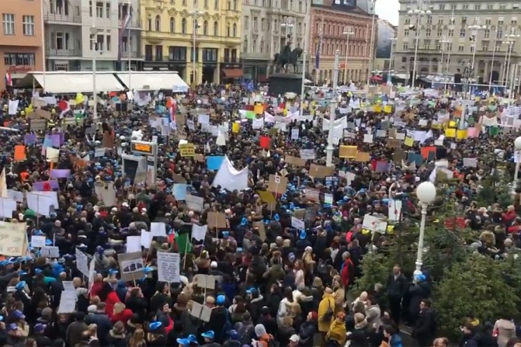 Na protestima su se okupili brojni građani i učenici koji podržavaju štrajk u školstvu, uz zahtjev povećanja koeficijenta složenosti posla za 6,11 posto.