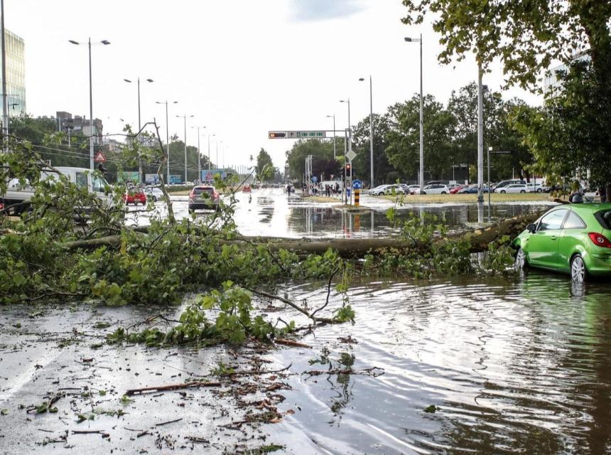 Snažan vjetar i obilna kiša napravili su haos u Zagrebu.