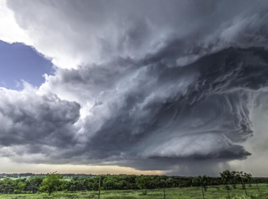 Nacionalna meteorološka služba saopćila je da su vjetrovi brzine 128 kilometara na sat zabilježeni ovog vikenda zajedno sa gradom veličine bejzbol loptice.