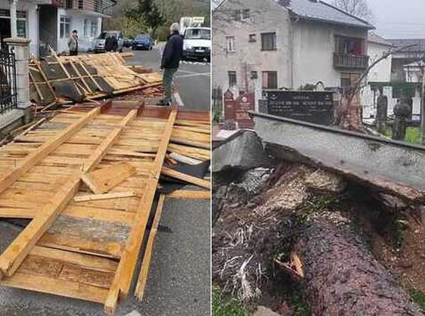 Sudeći prema fotografijama koje su objavljene na Facebook stranici BHMeteo.ba, vjetar je nosio krovove kuća i napravio štetu na tamošnjim objektima.