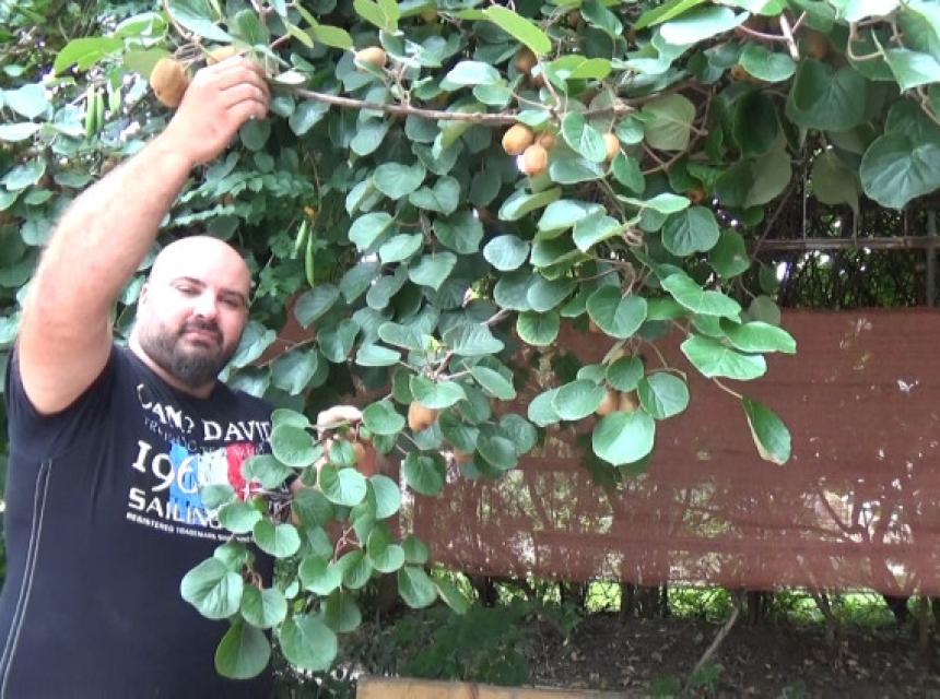 Dodaje kako je sadnicu ovog južnog voća iz Njemačke donio njegov otac te ga iz radoznalosti zasadio u dvorištu. Iako se radi o biljci koja traži blagu i primorsku klimu, kivi se pokazao veoma otpornim na ovdašnje zime i niske temperature.