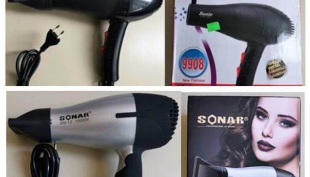 Na tržištu BiH pronađena su dva tipa fenova za sušenje kose marke "Sonar" koji spadaju u grupu nesigurnih proizvoda jer predstavljaju opasnost od strujnog udara.