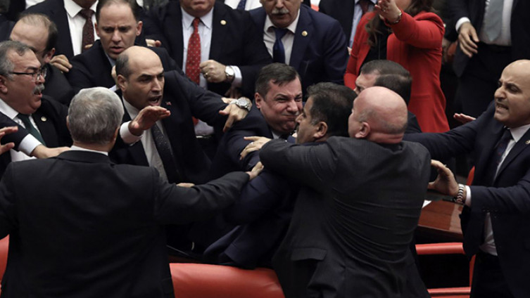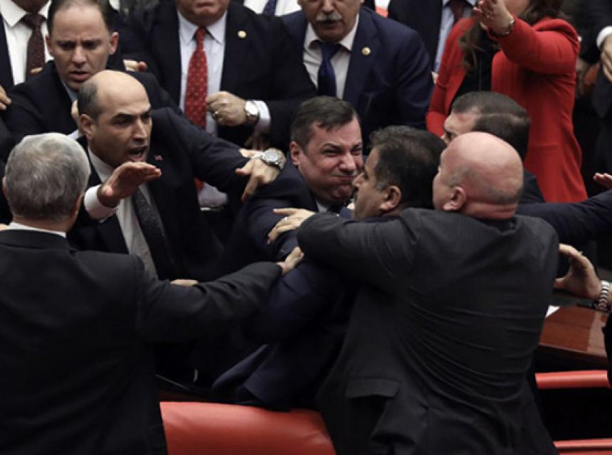 U turskom parlamentu danas je došlo do tučnajve između poslanika tokom govora člana opozicione Republikanske narodne stranke (CHP) Engina Ozkoča, koji je ranije optužio predsjednika Redžepa Tajipa Erdoana (Recep Tayyip Erdogan) da ne poštuje vojnike koji su poginuli u Siriji.