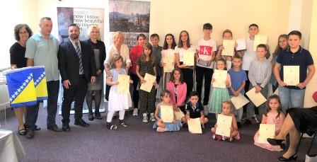 Dodjelu uvjerenja i svjedočanstava je uveličao NJ.E Vanja Filipović, Ambasador BiH u Londonu, obrativši se svima prigodnim riječima te je lično uručio svjedočanstva i nagrade . U očima učitelja, roditelja, kolega i svih prisutnih se mogao vidjeti ponos i sreća zbog svih učenika, koji su skoro sve svoje slobodne subotnje dane proveli u klupama bh.dopunske škole kako bi naučili maternji jezik i sačuvali kulturni identitet od zaborava, ali i međusobno se družili i igrali. Učenici koji su dobili uvjerenja su: Bahtagić Neyla, Bahtagić Alem,Bešić Elma, Bešić Amna, Bolić Emina, Bolić Ajša, Bolić Ćazim, Ćatibušić Rijad, Ćatibušić Aldin, Cerić Faris, Dedić Adna, Dergić Amila, Durmišević Elma, Forić Sabaheta, Gološ Zara, Gološ Ishak, Hadžović Tara, Gološ Alem,Halvadžić Amer, Halvadžić Lejla, Imamović Kerim, Isić Benjamin, Musić Rasim, Zlomužica Harun, Solaković Jasmina, Durmišević Amila, Fawzi Mae, Šadić Ariyan, Halilović Selma, Moro Stella, Moro Francesca, Adilović Lamiya, Adilović Almedina, Dedić Hamza, Vunić Almedin.