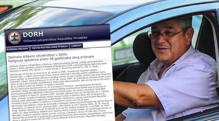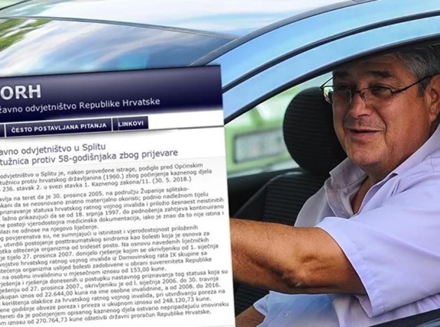 Da je 30. prosinca 2005. godine "u nakani da se neosnovano znatno materijalno okoristi podnio nadležnom tijelu pisani zahtjev za priznavanje statusa hrvatskog ratnog vojnog invalida i priložio šesnaest neistinitih liječničkih nalaza, lažno prikazujući da se od 18. srpnja 1997. do podnošenja zahtjeva kontinuirano liječio te da o tome postoji vjerodostojna medicinska dokumentacija, iako je znao da to nije istina i da se priloženi nalazi ne odnose na njegovo liječenje".