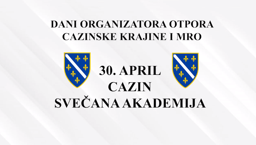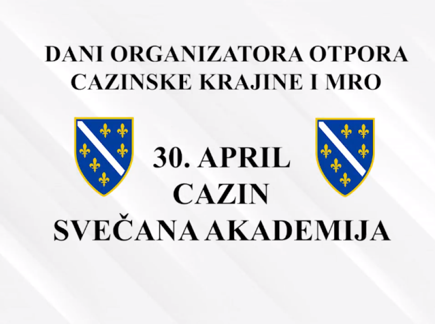 Večeras, 30. aprila, u velikoj sali Doma kulture Cazin biće održana svečanea akademijea u organizaciji RU "Organizatori otpora Krajine" sa početkom u 19:00 sati.