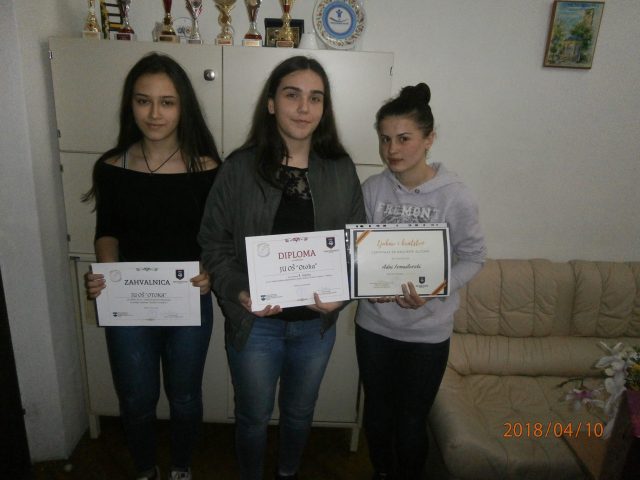 Ekipa naše škole u sastavu Adna Ismailovski, Harisa Bešić i Alma Arnautović svoja postignuća i svoju školu predstavile je u najljepšem sjaju i osvojila treće mjesto.