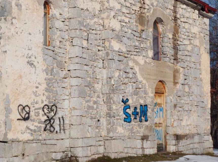Beganović je rekao da je policija primila dojavu poslije podne i izašla na mjesto događaja, navodeći da je na Crkvi ispisano pet grafita crnom i plavom bojom.