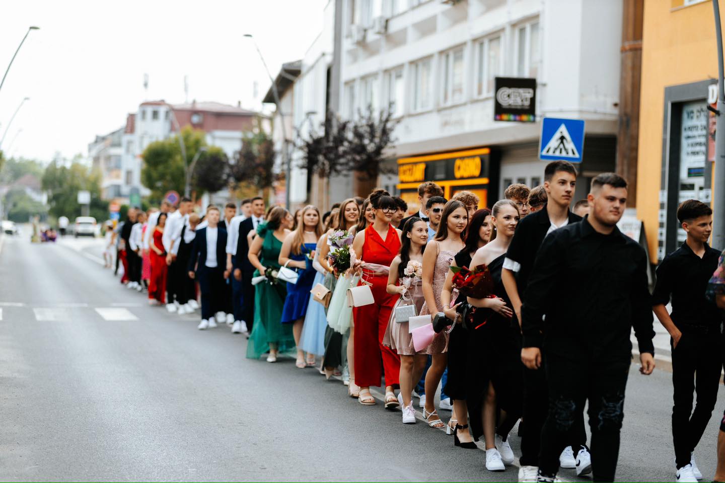 Svečanost je započela u objektu ove školske ustanove, da bi se maturanti uputili u Grad gdje su prodefilirali centrom Cazina uz fotografisanje i prisustvo većeg broja Cazinjana.