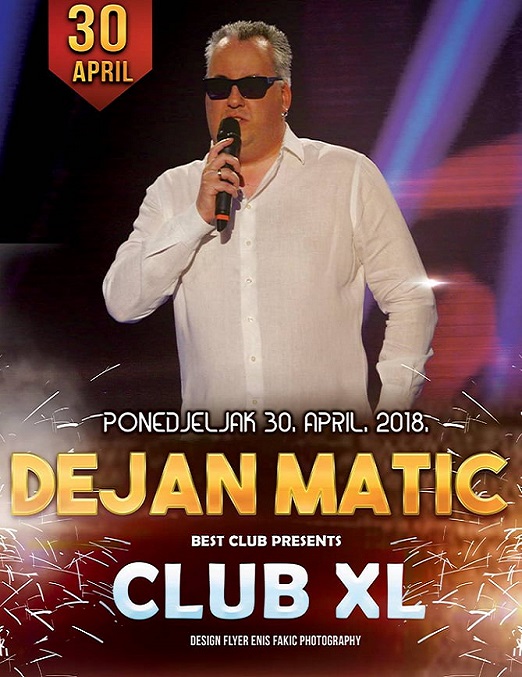 Portal Cazin.NET i disko klub “XL” nagrađuju pet (5) naših čitatelja sa po dvije (2) ulaznice za koncert Dejana Matića koji će se održati u danas, 30.04.2018. godine,