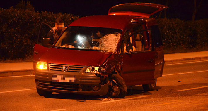 Nedaleko od naselja vozačica je djelomično prešla na suprotnu stranu ceste, gdje je prednjim dijelom udarila u motocikl Gillera koji je naišao iz suprotnog smjera.