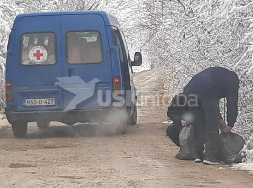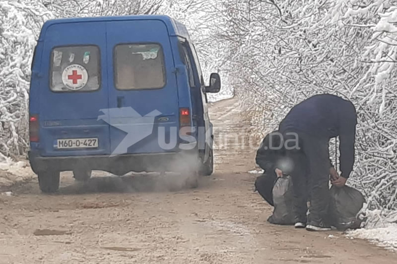 Reporter USKinfo.ba zabilježio je zanimljive scene pri povratku sa Vučjaka. Naime, migranti koji bi željeli primiti hranu ili pakete pomoći, čekaju u šumi pored puta kombi Crvenog križa.