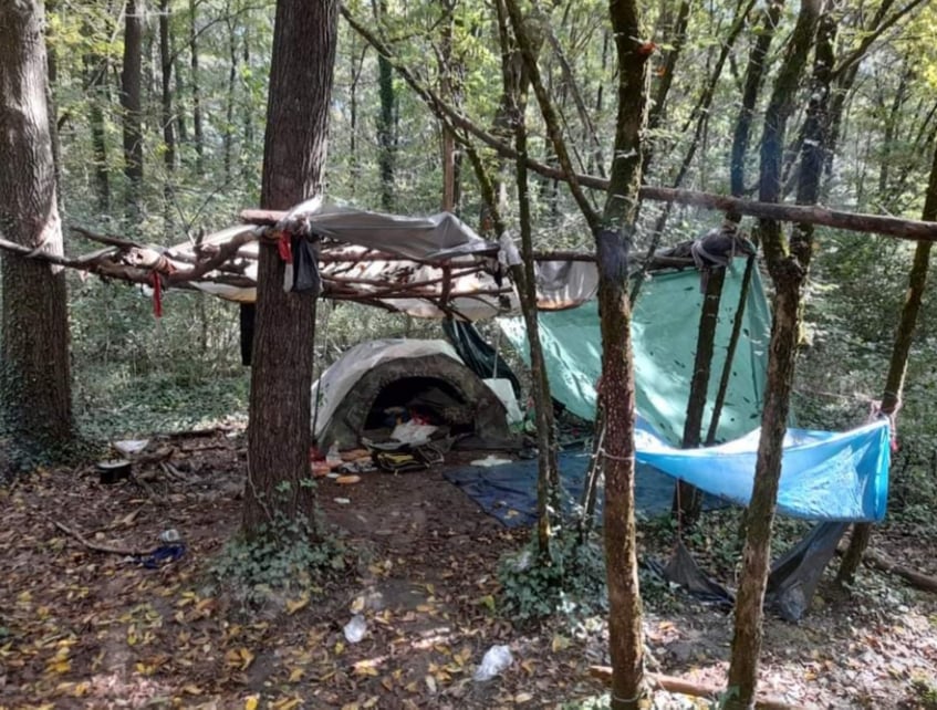 U šumi kod Domašinca lokalni lovci pronašli su migrantski kamp koji su oni napustili nakon što su se uplašili pucnjave od strane lovaca.