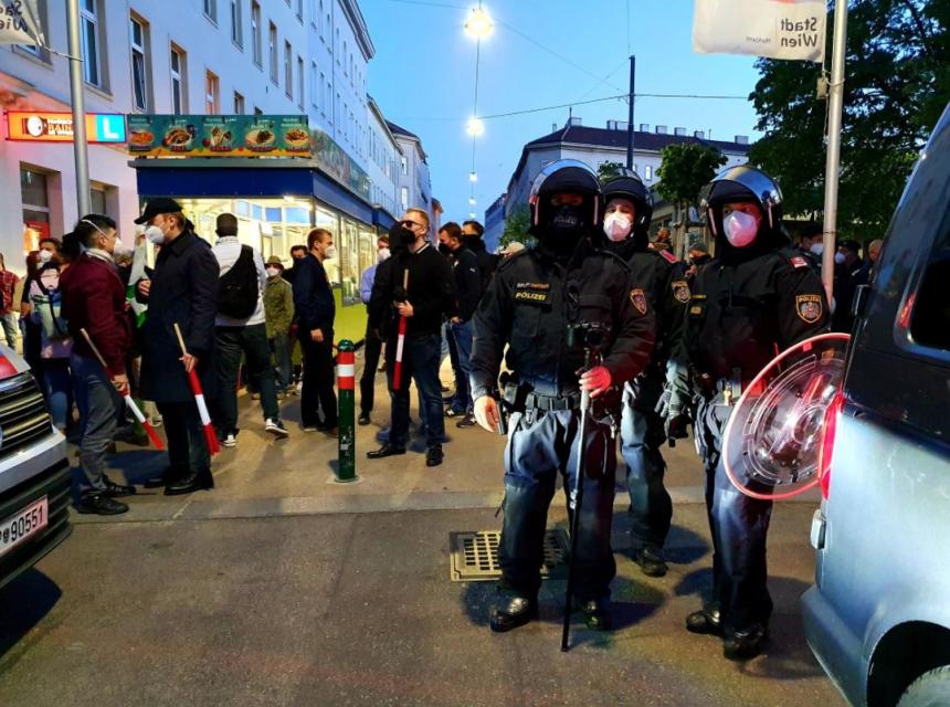 Prema informacijama bečke policije, pojedini prosvjednici su nasilno željeli ući u unutrašnjost stanice, kako bi se sukobili s ljevičarskim prosvjednicima. Policija je sprječavala sukob, zbog čega su ih desničari gađali bocama i pirotehničkim napravama.
