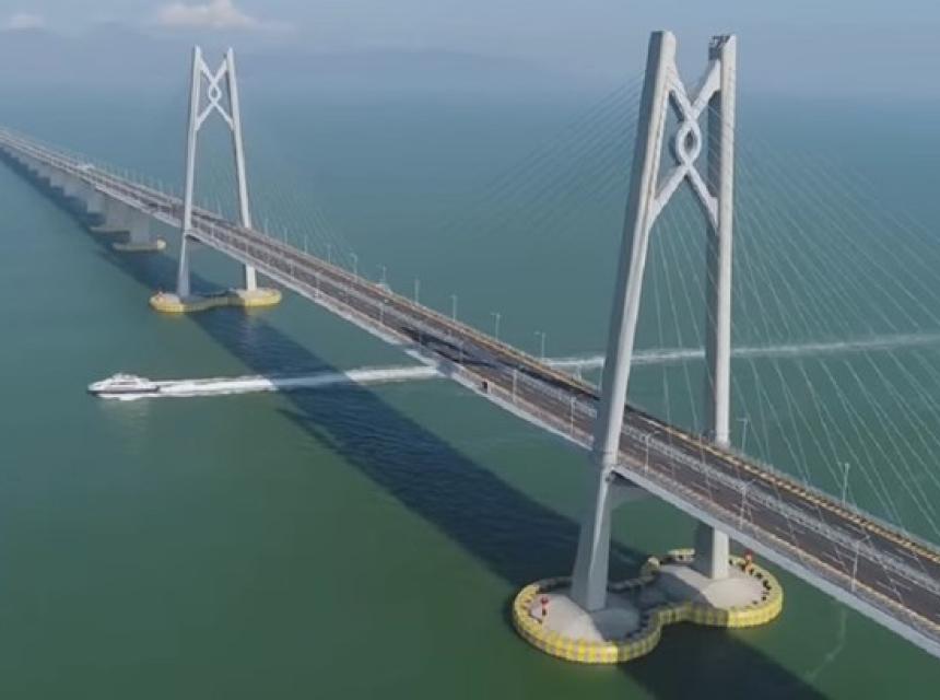 U toj infrastrukturi dugoj 55 km izmjenjuju se dug cestovni most koji vijuga iznad voda delte Biserne rijeke i podmorski tunel.